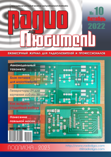 КОЛОНКА РЕДАКТОРА 2 Путеводитель по подписке на журнал “Радиолюбитель” ГОРИЗОНТЫ ТЕХНИКИ 3 Новости от C·NEWS 7 Виктор Беседин (UA9LAQ). Управление погодой АУДИОТЕХНИКА 8 Алексей Браницкий. Электромузыкальный “эспандер” АВТОМАТИКА 12 Михаил Шустов. Простые регулируемые фазовращатели цифровых сигналов 12 Владимир Шарапов. Умный датчик 14 Павел Негробов. Контроллер координатно-указательных устройств 16 Михаил Шустов. Реверсивно-дискретный цифровой регулятор мощности АНТЕННЫ 18 Виктор Беседин (UA9LAQ). Малогабаритные антенны ИЗМЕРЕНИЯ 22 Олег Ильин. Авиамодельный тахометр 24 Михаил Шустов. Генераторы заданной серии импульсов от 1 до 9 ИСТОЧНИКИ ПИТАНИЯ 26 Виктор Беседин (UA9LAQ). БП для шуруповёрта – экспромт ИНДИВИДУАЛЬНОЕ РАДИОВЕЩАНИЕ 28 Сергей Комаров (UA3ALW). Технологическая цепочка радиовещания РАДИОПРИЕМ 32 Василий Гуляев. Как выбрать студийные кабели “РЛ” - НАЧИНАЮЩИМ 35 Михаил Бараночников. Простой магнитометр своими руками 36 Виктор Беседин (UA9LAQ). Простые генераторы ЗЧ для изучения азбуки Морзе и не только… 39 Александр Берёзкин (UA1AEB). “Радиовещание на русском языке” РАДИОСВЯЗЬ 40 Виктор Беседин (UA9LAQ). Фильтр на 432 МГц ТЕХНОЛОГИИ 42 Андрей Савченко. Изготовление печатных плат. Нанесение паяльной маски 44 Владимир Мельник. Аппарат для удаления камней из мочеточника КНИЖНАЯ ЛАВКА РЕСПУБЛИКАНСКАЯ НАУЧНО-ТЕХНИЧЕСКАЯ БИБЛИОТЕКА 46 Компьютеры для начинающих и продвинутых пользователей 47 КУПЛЮ, ПРОДАМ, ОБМЕНЯЮ 48 “РЛ” - ИНФО |