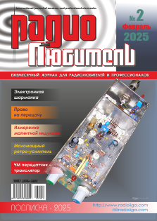 КОЛОНКА РЕДАКТОРА 2 Путеводитель по подписке на журнал “Радиолюбитель” ГОРИЗОНТЫ ТЕХНИКИ 3 Новости от C·NEWS АВТОЛЮБИТЕЛЮ Понятия. Основы автозвуковой науки, опыты и эксперименты 8 Андрей Елютин, Юрий Евтушенко. Право на передачу АУДИОТЕХНИКА 13 Алексей Браницкий. Электронная шарманка АВТОМАТИКА 16 Михаил Шустов. Многоканальный переключатель аналого-цифровых сигналов, управляемый напряжением ИЗМЕРЕНИЯ 18 Леонид Ридико. Интерполирующий частотомер FC-510 22 Алексей Гаврилов. Измерение магнитной индукции постоянного магнитного поля в диапазоне 0…1 тесла ИСТОЧНИКИ ПИТАНИЯ 24 Михаил Шустов. Низковольтное питание LED 26 Владимир Мельник. Об аккумуляторах 12 В 7-7,2 А·ч ИНДИВИДУАЛЬНОЕ РАДИОВЕЩАНИЕ 28 Сергей Комаров (UA3ALW). Принципиальная разница между Профессиональным и Индивидуальным радиовещанием ИНФОРМАЦИОННЫЕ ТЕХНОЛОГИИ 30 Александр Алексеев (R2AUK). Микроконтроллеры STM32: учимся передавать звук с использованием протокола I2S “РЛ” - НАЧИНАЮЩИМ 34 Андрей Савченко. Маломощный ретро-усилитель РАДИОПРИЕМ 38 Александр Берёзкин (UA1AEB). Новости мира радиовещания 41 Александр Берёзкин (UA1AEB). “Радиовещание на русском языке” РАДИОСВЯЗЬ 42 Виктор Беседин (UA9LAQ). ЧМ передатчик – транслятор 45 Двухдиапазонная портативная радиостанция VR-N76 КНИЖНАЯ ЛАВКА Республиканская научно-техническая библиотека 46 Радиотехника 46 Источники питания 47 КУПЛЮ, ПРОДАМ, ОБМЕНЯЮ 48 “РЛ” - ИНФО |