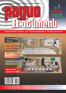 КОЛОНКА РЕДАКТОРА 2 Путеводитель по подписке на журнал “Радиолюбитель” ГОРИЗОНТЫ ТЕХНИКИ 3 Новости от C·NEWS АУДИОТЕХНИКА 8 Алексей Браницкий. ЭМИ “Бас-Аккорд” 14 Владимир Мельник. Аудио центр своими руками АВТОЛЮБИТЕЛЮ Понятия. Основы автозвуковой науки, опыты и эксперименты 16 Андрей Елютин. Генеральная уборка. Об этой рубрике – по понятиям 20 WHO IS АЗ ИНФОРМАЦИОННЫЕ ТЕХНОЛОГИИ 21 Александр Алексеев (R2AUK). Микроконтроллеры STM32: электронный телеграфный ключ на STM32F030 АВТОМАТИКА 22 Д. Фос. Простая сетевая метеостанция 25 Михаил Шустов. Управляемые светом энергосберегающие реле ИЗМЕРЕНИЯ 27 Михаил Шустов. Мостовые RC-генераторы на ОУ и компараторах ИНДИВИДУАЛЬНОЕ РАДИОВЕЩАНИЕ 28 Сергей Комаров, Константин Гранковский. Стационарная средневолновая радиовещательная антенна РАДИОПРИЕМ 31 Александр Берёзкин (UA1AEB). “Радиовещание на русском языке” “РЛ” - НАЧИНАЮЩИМ 32 Андрей Савченко. Индикатор уровня на ВЛИ 36 Александр Алексеев (R2AUK). Детекторный AM-приемник: теория и практика ТЕХНОЛОГИИ 38 Александр Алексеев (R2AUK). Как я обжимаю кабели RG58 и RG213 40 Александр Черномырдин. SMD и силовая электроника РАДИОСВЯЗЬ 41 Александр Сергеев. Высокочувствительный узкополосный регенеративный радиоприемник с кварцевой стабилизацией частоты настройки 45 УКВ FM трансивер FT-3185R/FT-3185E КНИЖНАЯ ЛАВКА РНТБ Республиканская научно-техническая библиотека 46 Источники питания ВЫСТАВКИ РНТБ 47 Мир глазами юных изобретателей 47 Информационная безопасность: защита в цифровом мире 48 “РЛ” - ИНФО |