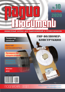 ГОРИЗОНТЫ ТЕХНИКИ 2 Новости от C·NEWS ТРОФЕИ МИНУВШЕЙ ВОЙНЫ 6 Сергей Комаров (UA3ALW). УКВ рация для оперативной телефонной связи на поле боя KLEIN FUNK SPRECHER D “DORETTE” НА ЗЛОБУ ДНЯ 8 Виктор Беседин (UA9LAQ). Маски-шоу... АНОНС КНИГИ 9 Комаров С.Н. Индивидуальное радиовещание. 7. Цели, задачи и общая стратегия АУДИОТЕХНИКА 10 Андрей Савченко, Максим Кулаковский. Первый транзисторный АВТОМАТИКА 13 Вячеслав Калашник. Простой металлоискатель ИЗМЕРЕНИЯ 14 Виктор Кандауров. Прибор для проверки ESR оксидных конденсаторов 16 Виктор Беседин (UA9LAQ). ГИР-волномер: конструкция 19 Святослав Бабын (UR5YDN). Генератор на туннельных диодах для настройки тракта ПЧ на 6,5 МГц 21 Михаил Шустов. Генераторы синусоидальных сигналов ИСТОЧНИКИ ПИТАНИЯ 22 Виктор Беседин (UA9LAQ). Модернизация БП FP-707 “РЛ” - НАЧИНАЮЩИМ 25 Роман Жерносеков (EW6TT). Несложный усилитель мощности UHF диапазона 26 Михаил Бараночников. Простой магнитометр своими руками 29 Александр Берёзкин (UA1AEB). “Радиовещание на русском языке” 30 Святослав Бабын (UR5YDN). Методика выявления выводов для подключения высокочастотного блока импортного радиоприемника 31 Валентин Сафонников. Устройство подключения клавиатуры к КПК 33 Алексей Браницкий. Сетевой фонарик для чтения АНТЕННЫ 34 Александр Симухин (RA3ARN). Необычная антенна для диапазона 160 метров РАДИОСВЯЗЬ Возвращаясь к напечатанному... 36 Виктор Беседин (UA9LAQ). QRPP передатчик 39 Виктор Беседин (UA9LAQ). Формализм? РАДИОПРИЕМ 41 Николай Хлюпин (RA4NAL). SDR приемник RSP1A от SDRplay ТЕХНОЛОГИИ 44 Виктор Беседин (UA9LAQ). Монтаж кабельных соединителей КНИЖНАЯ ЛАВКА Республиканская научно-техническая библиотека 46 Компьютерные технологии 47 Электроника за рулем 47 КУПЛЮ, ПРОДАМ, ОБМЕНЯЮ 48 “РЛ” - ИНФО |
